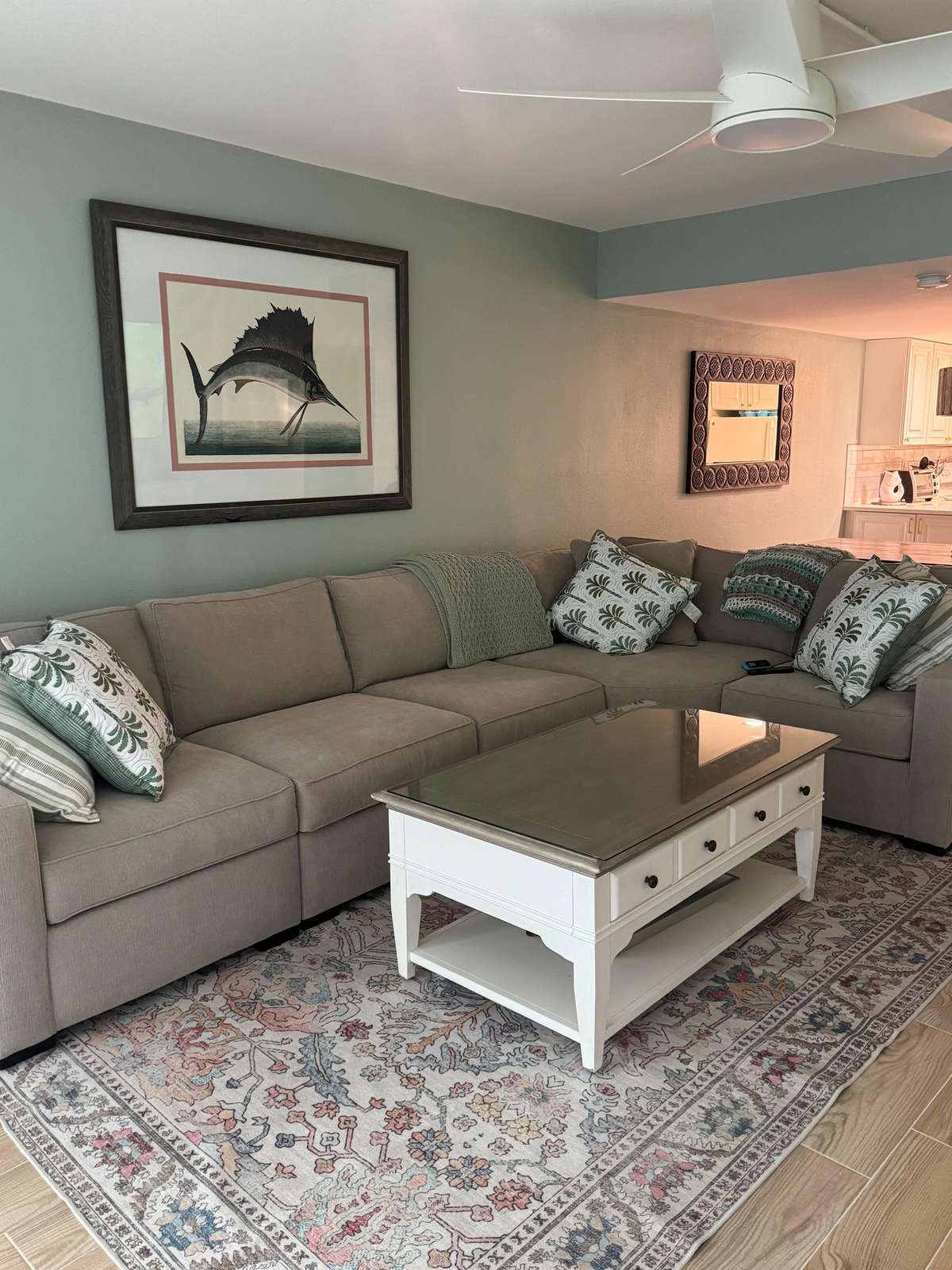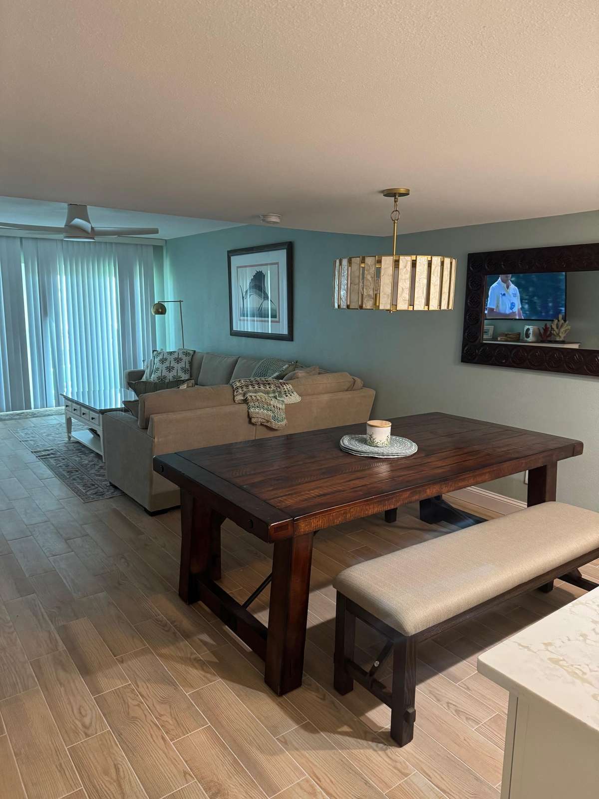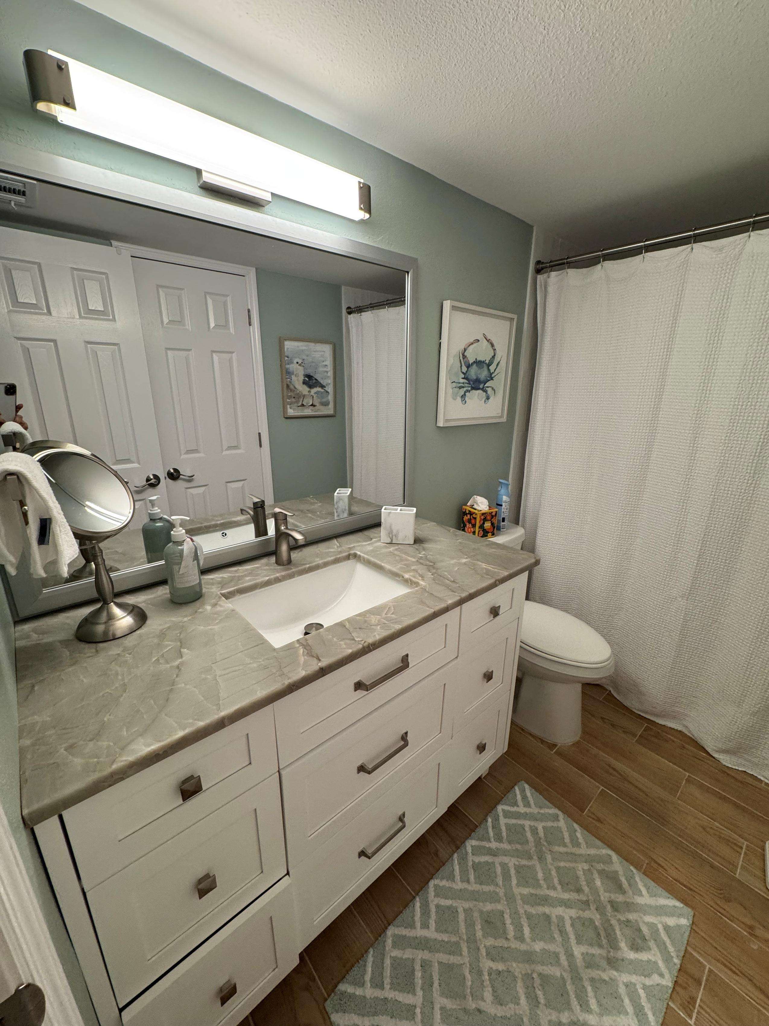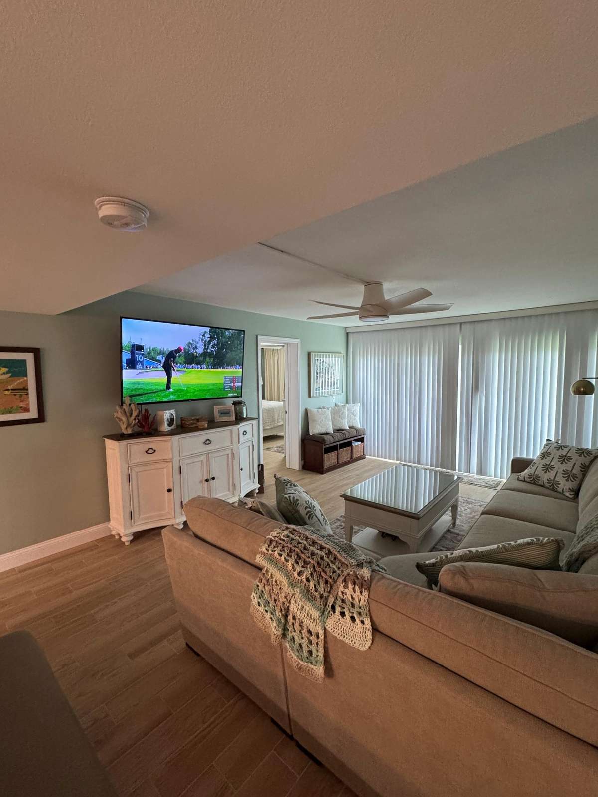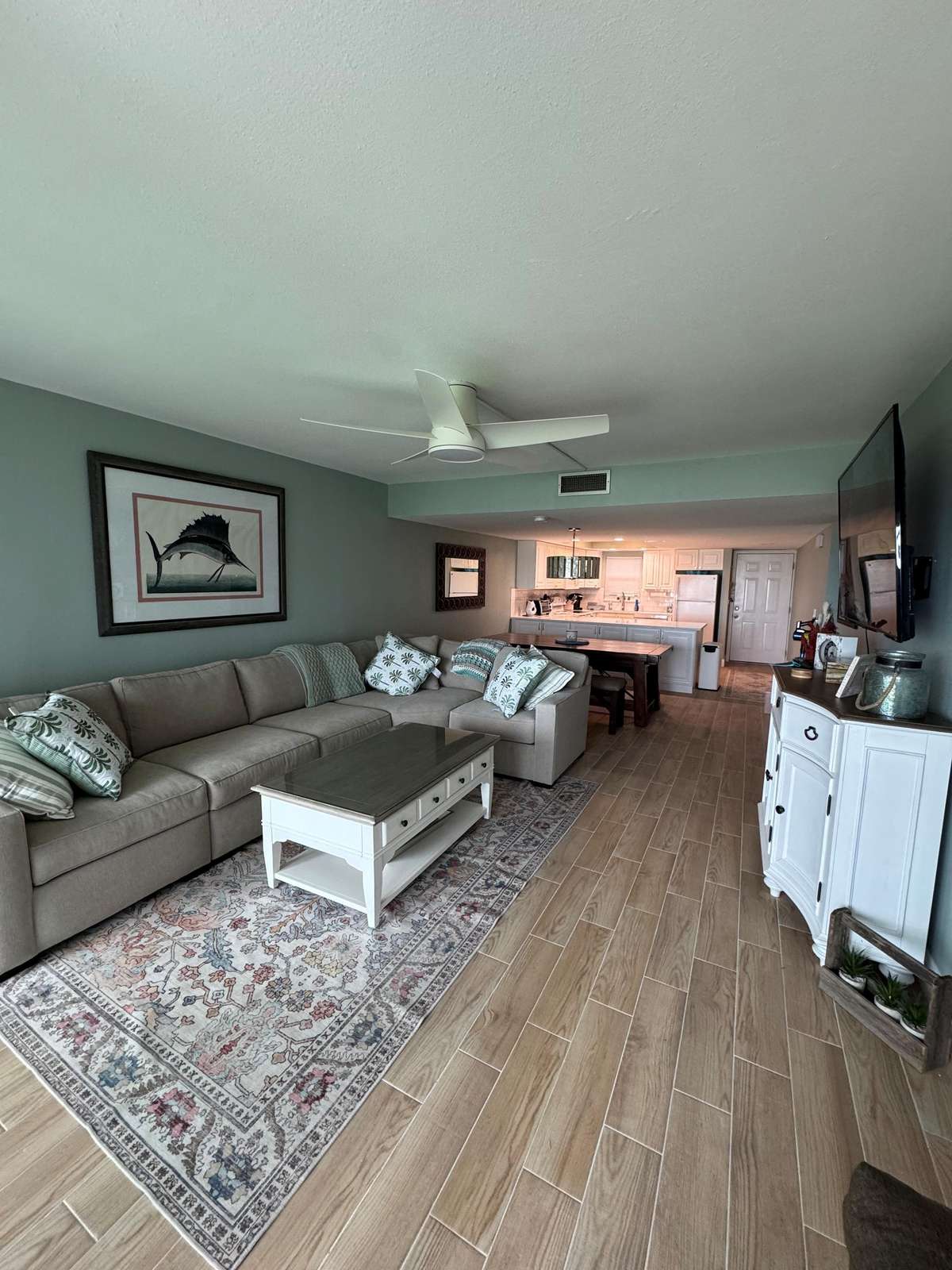 Two bedroom Two bath with a king bed in the master bedroom. The guest bedroom has two double beds and its own t.v. The building has WIFI, two gas grills and a heated pool overlooking the Gulf of Mexico. (SEVEN NIGHT MINIMUM)